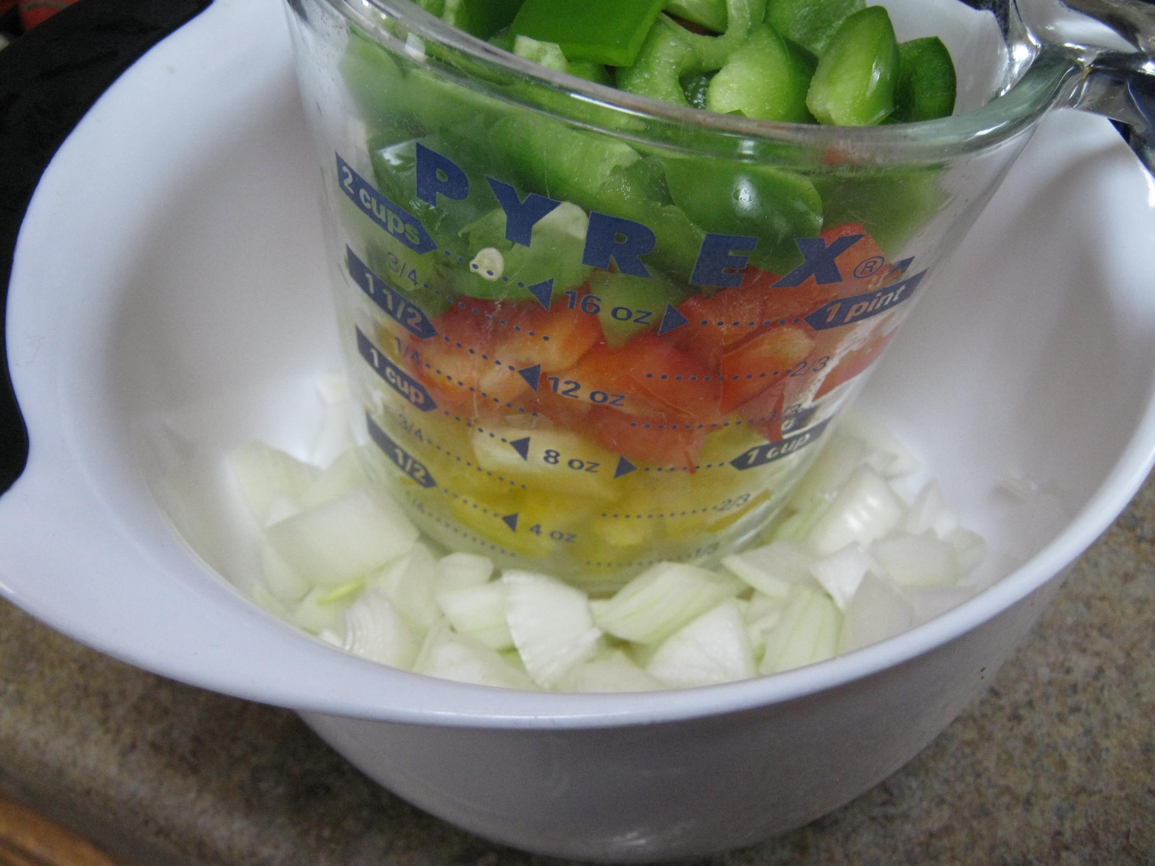 2-3 bell peppers, any combination of colors, diced (2 C) (see my quick tip on slicing peppers)
