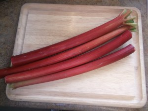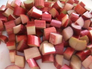 While the chicken cooks, dice the rhubarb into ½” pieces.