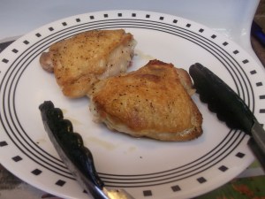 After about 30 minutes, the chicken should be done. (You can check it if you’re not sure: just cut it with a knife, and if it is no longer pink inside, it’s done.)