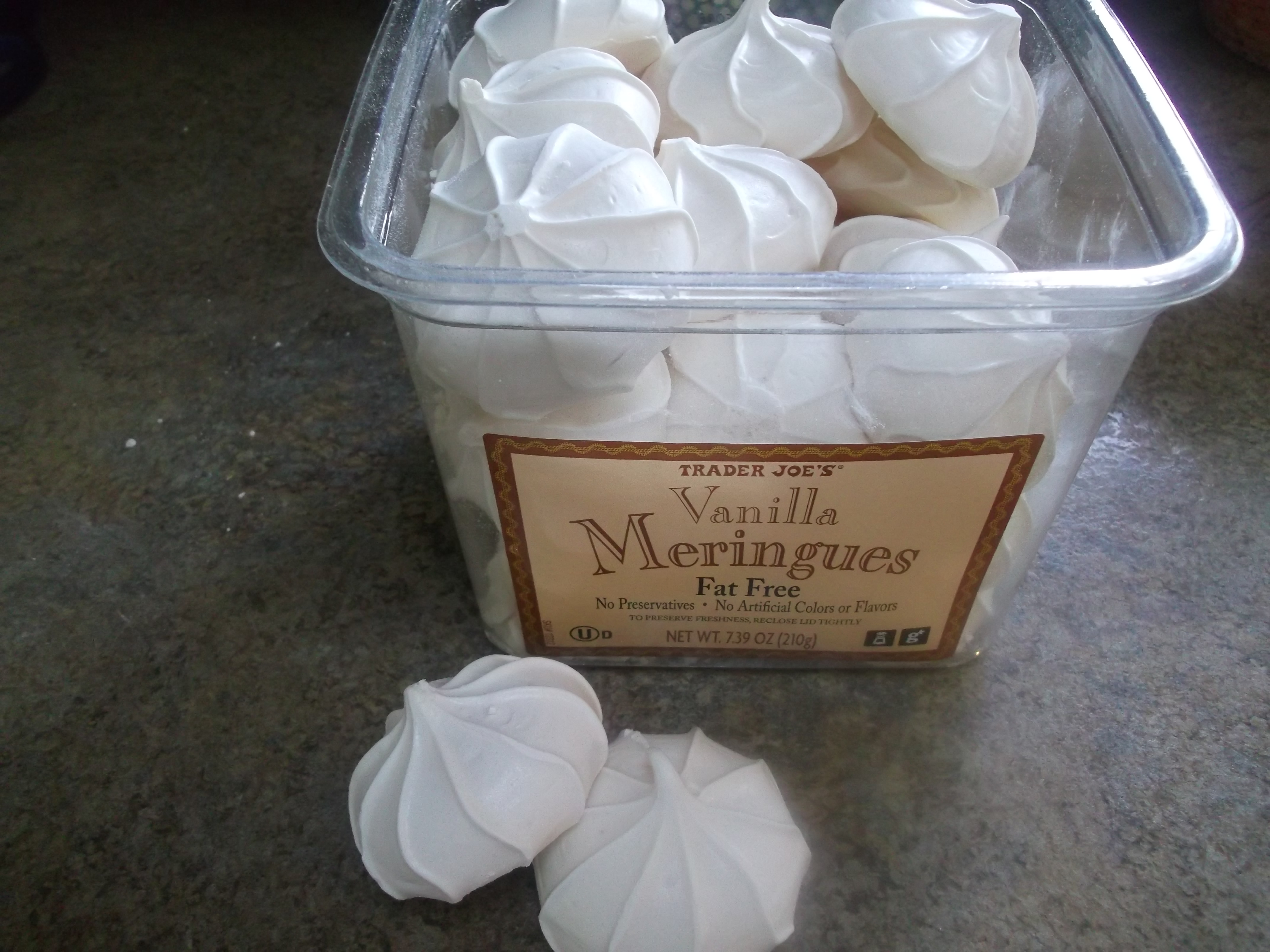 Now onto the meringues. I made my own the first time I made this dessert, but it was very time consuming, especially once I discovered them already made at the supermarket. I absolutely love these vanilla meringues from Trader Joe’s. They last forever, too, if you don’t gobble them up right away.