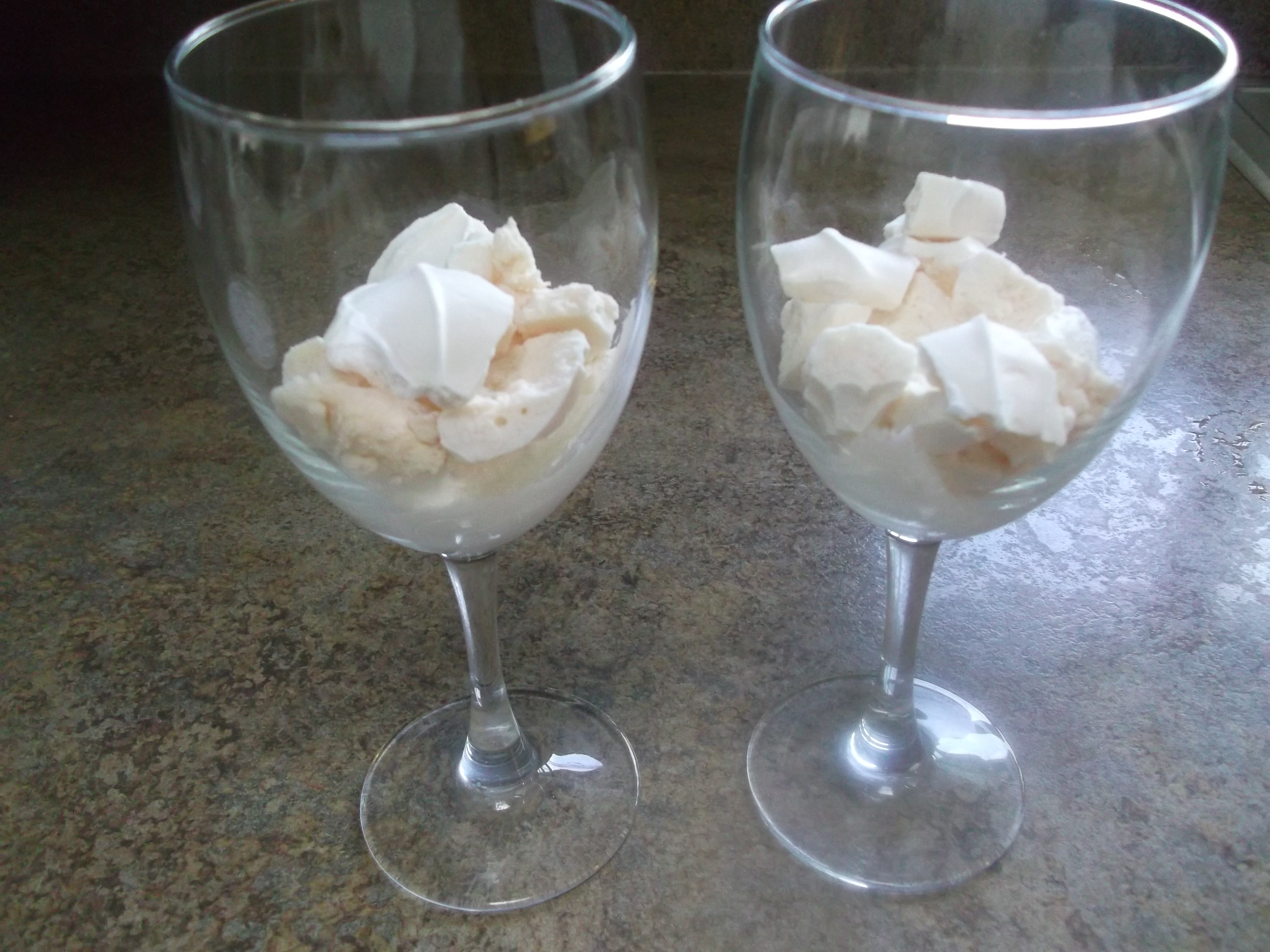 2) Add some of the crushed meringue cookies.