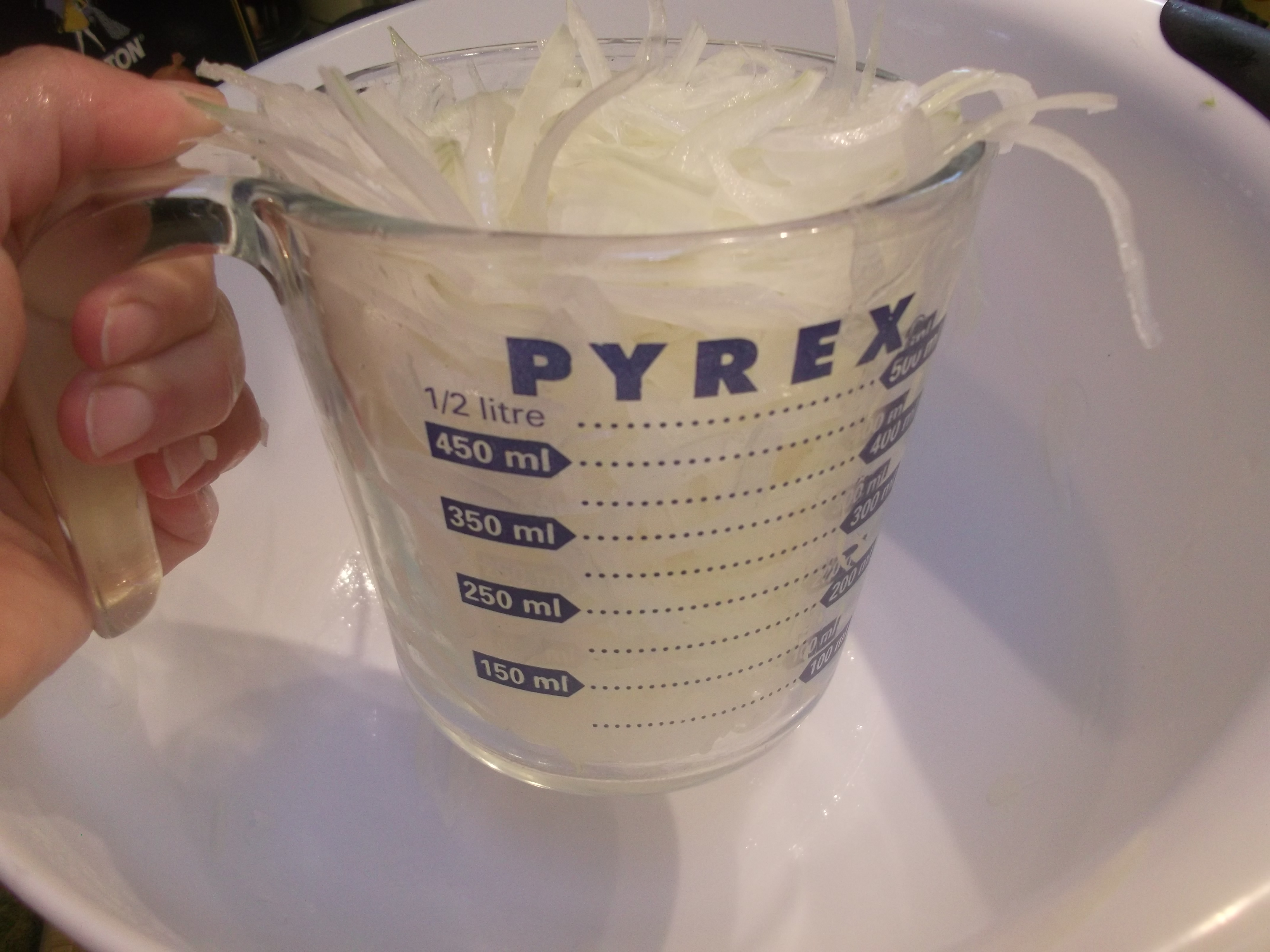 Slice the onions until you have a good two cups’ worth.