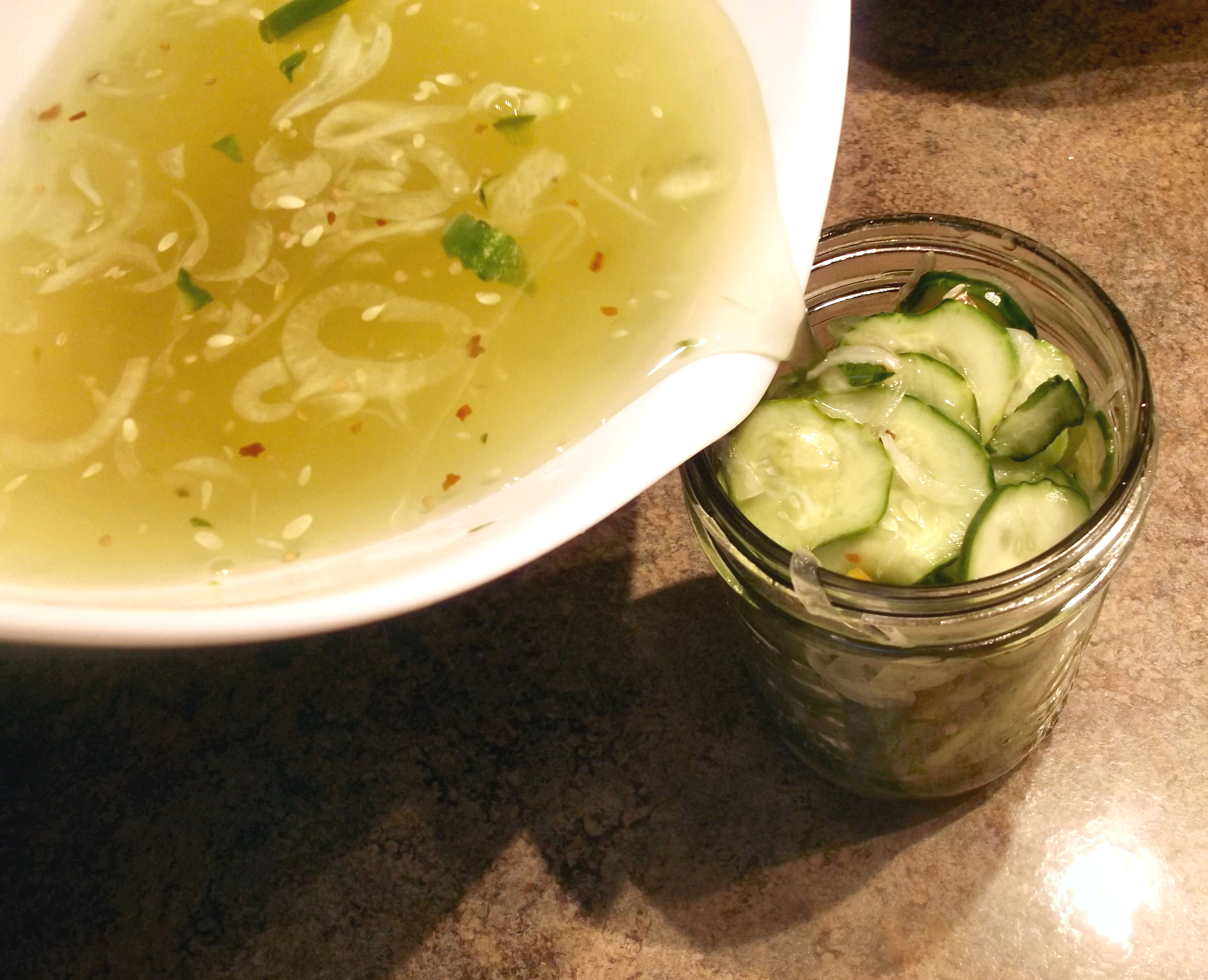 Pour the vinegar solution over the cucumber mixture.