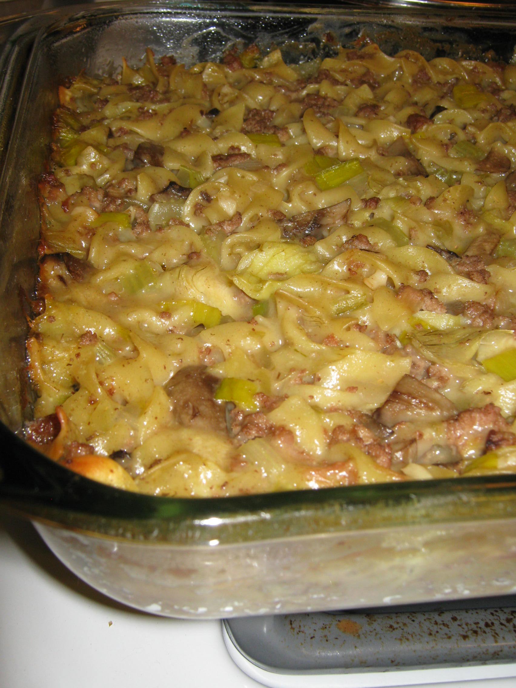 Cover tightly with foil and bake for 1 hour or until noodles are soft. Remove from oven, uncover, and let stand 10 minutes or so before serving.
