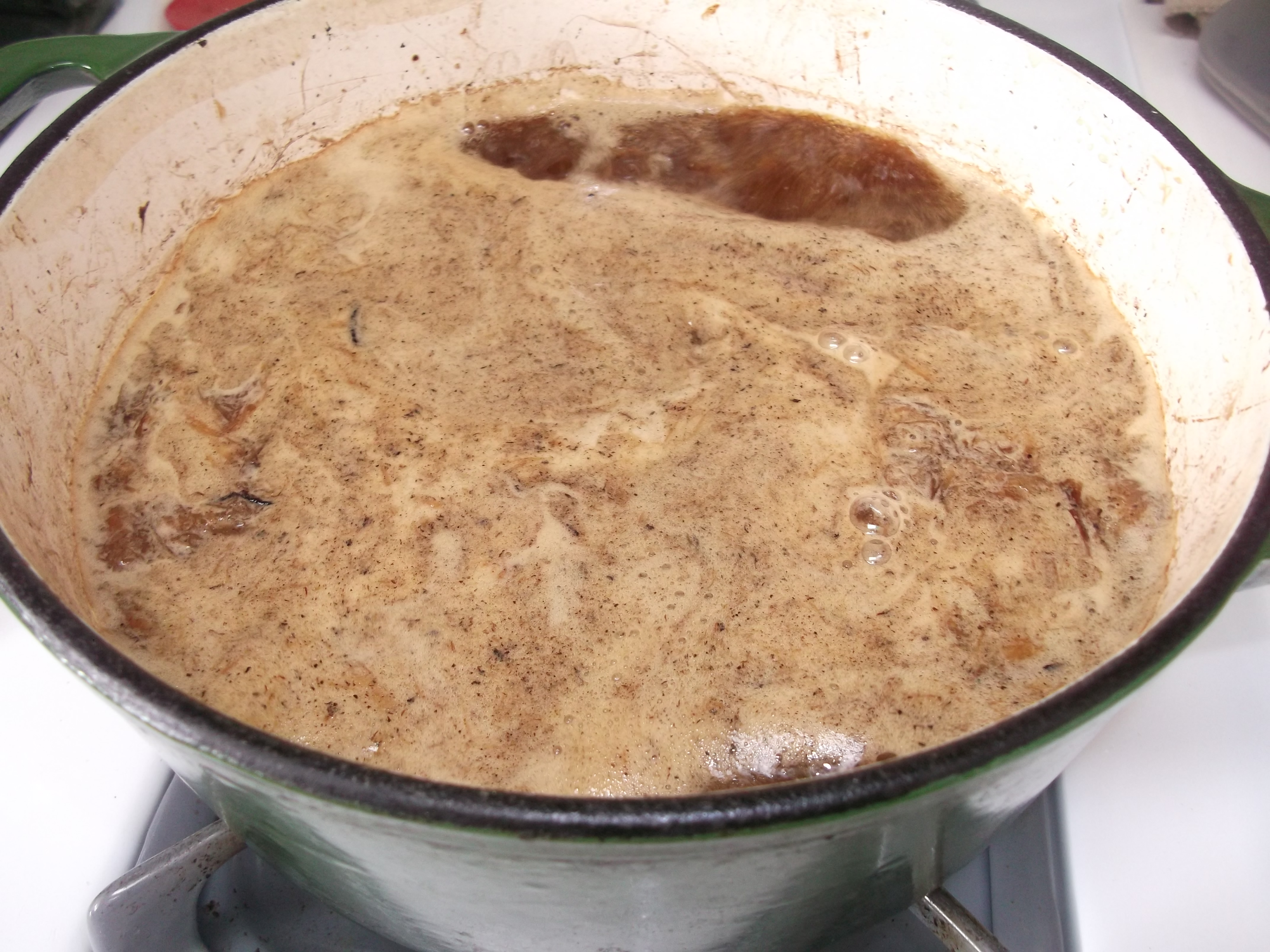 Scrape up any remaining brown crust from the bottom and sides of pot.