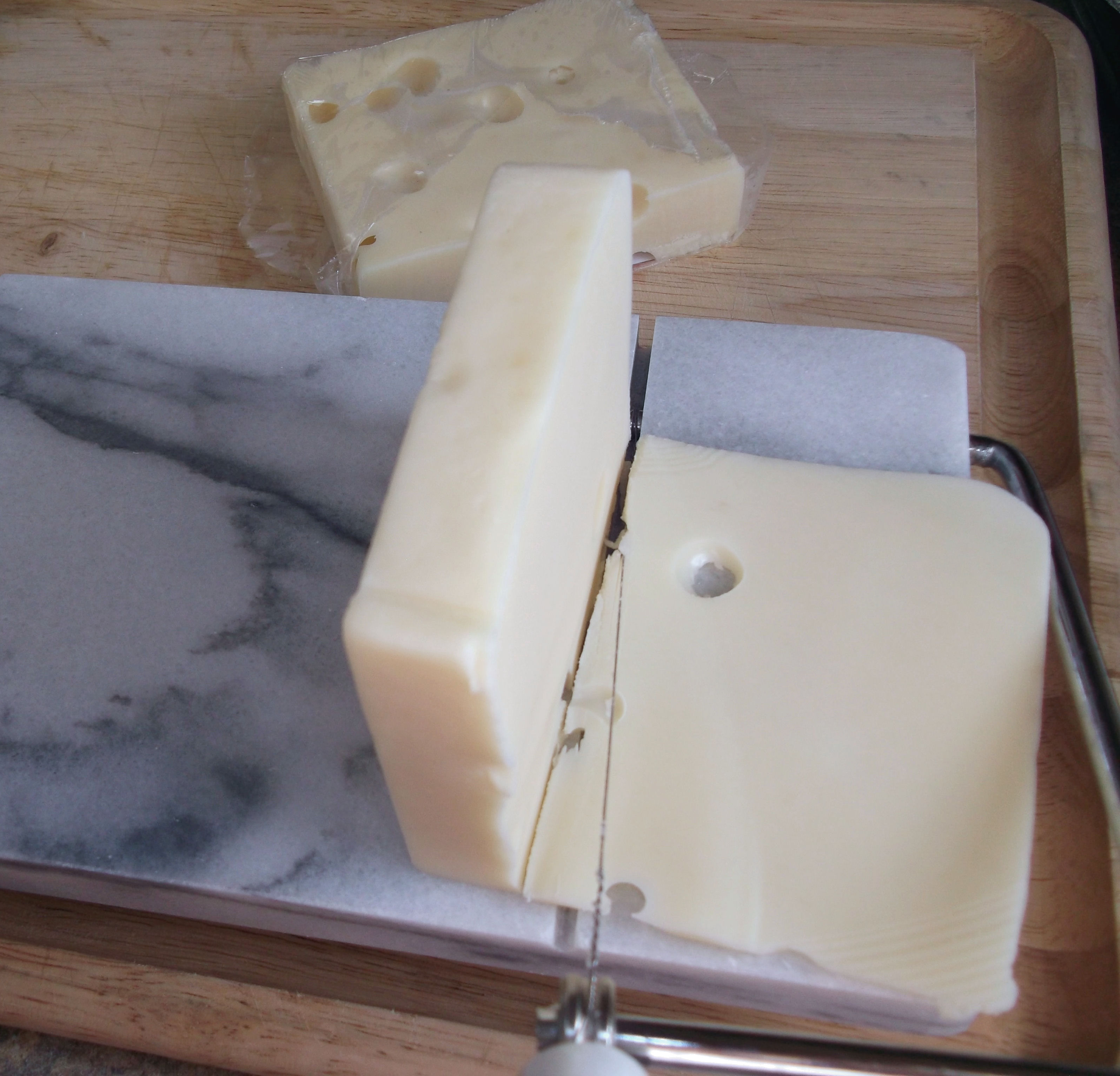 Slice the cheese, if you aren’t using pre-sliced cheese. Slicing a softer cheese like this was really kind of a pain, so I recommend just buying it sliced.
