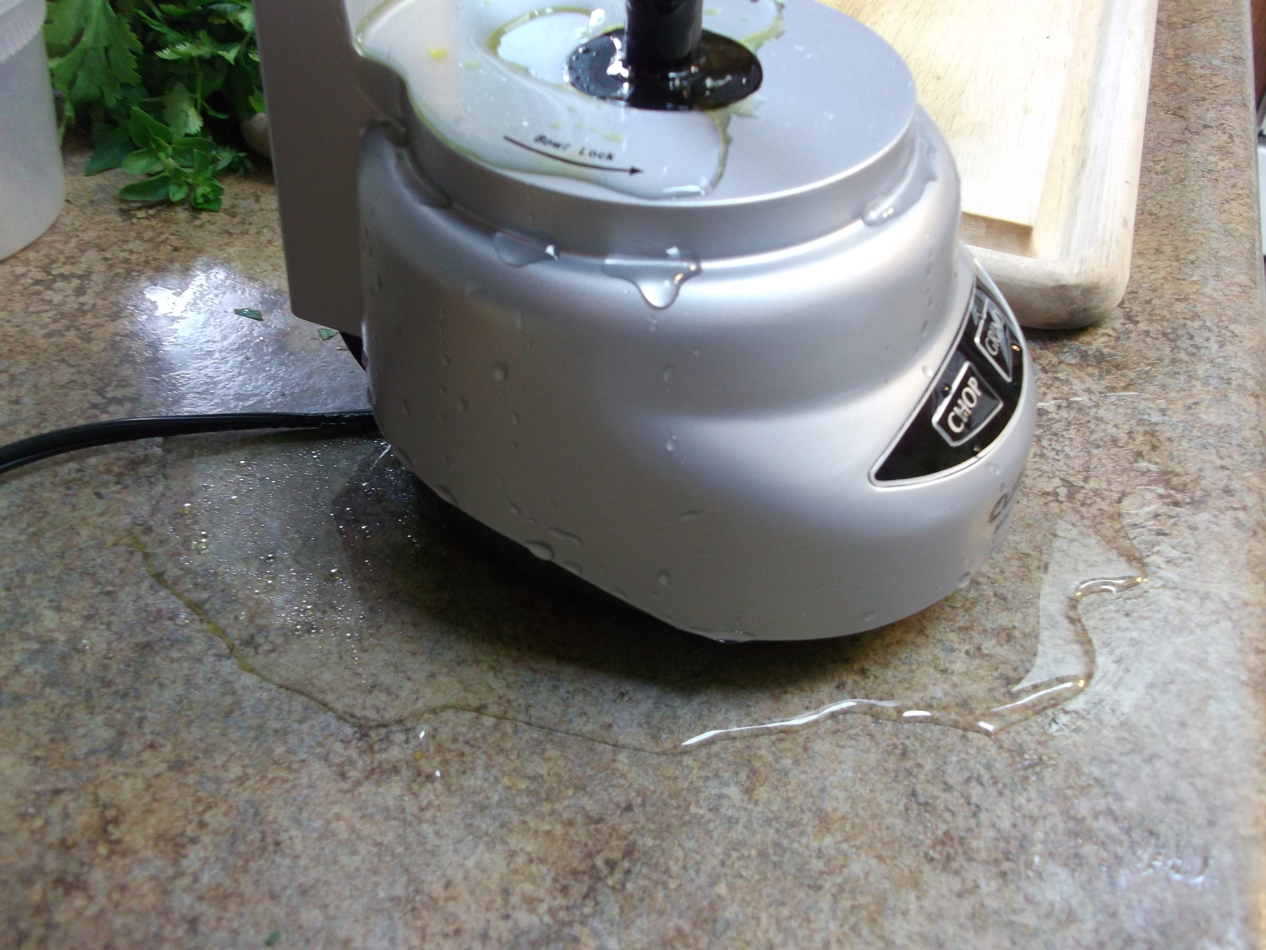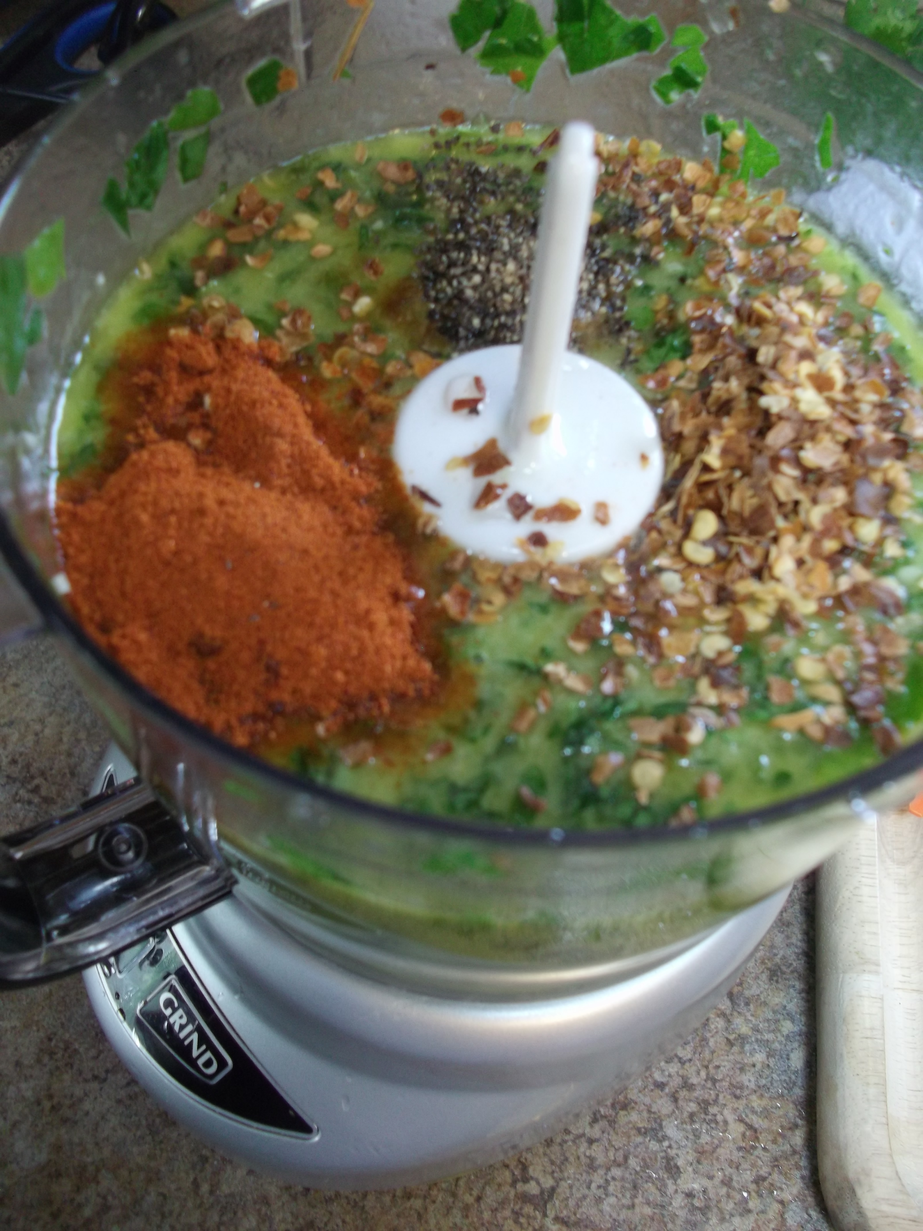 Make the chimichurri next. Before you start, be sure to use a large enough food processor to allow ample head room. I thought I could get by with my tiny one to save on clean-up. I packed it tightly and added the liquids last, but when I turned it on water and oil shot out all over the place. So much for saving time and clean-up…