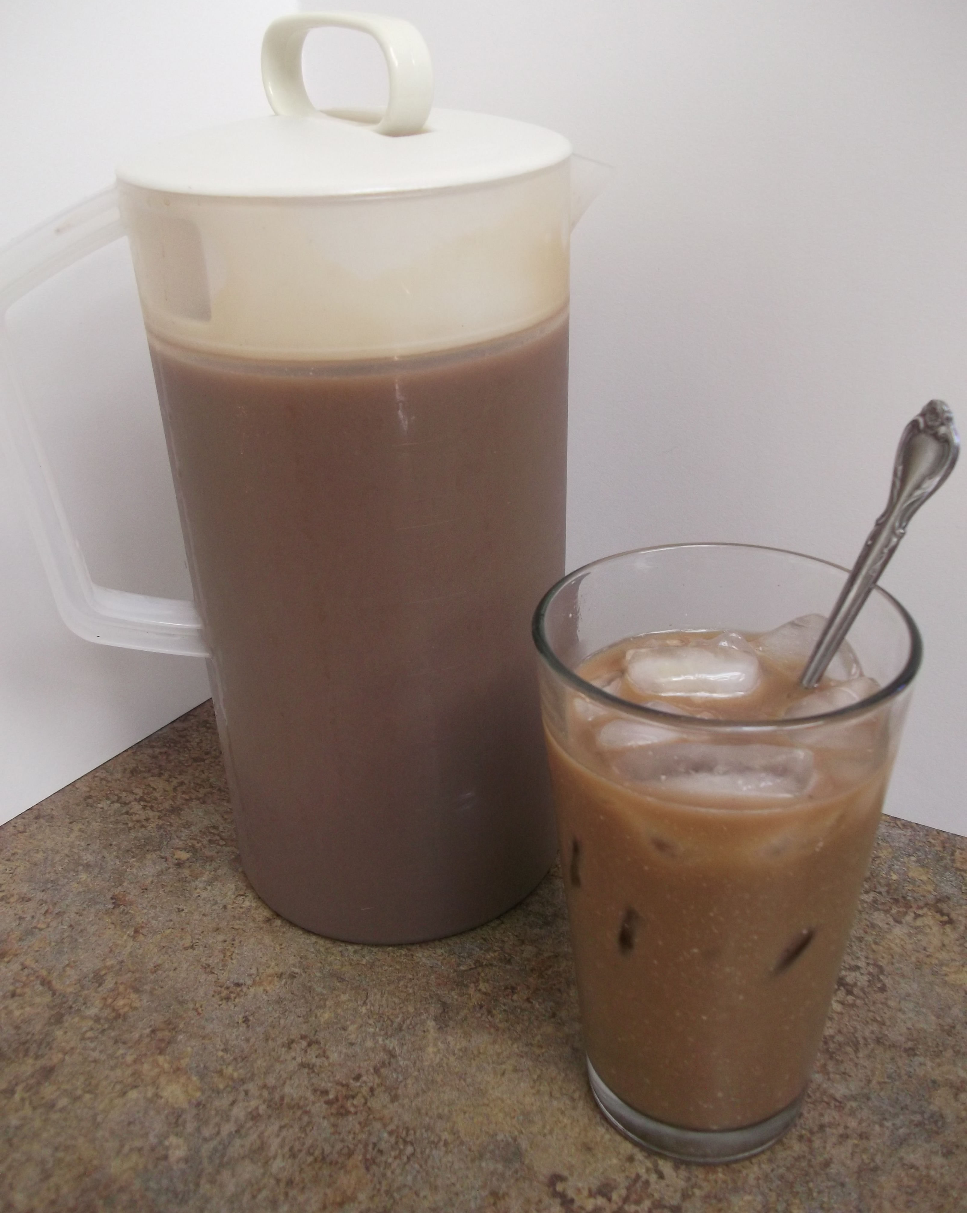 Serve the coffee chilled, over ice, and dilute each serving with at least an equal amount of a mix-in: regular milk, soy or almond milk, half-and-half or even water. Sweeten with sugar, simple syrup or chocolate syrup.