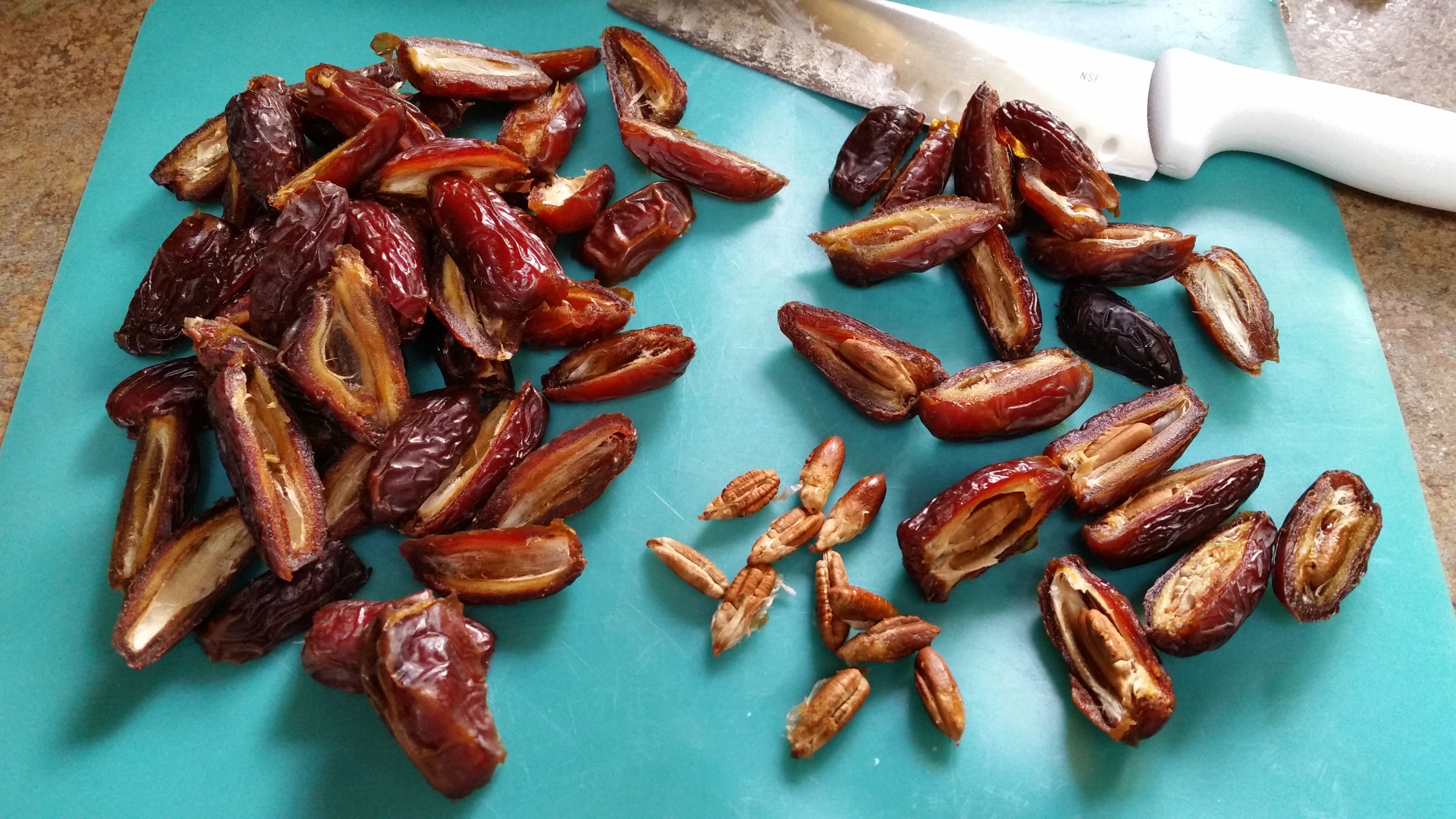 Slice dates in half lengthwise, removing the pits as they are exposed.