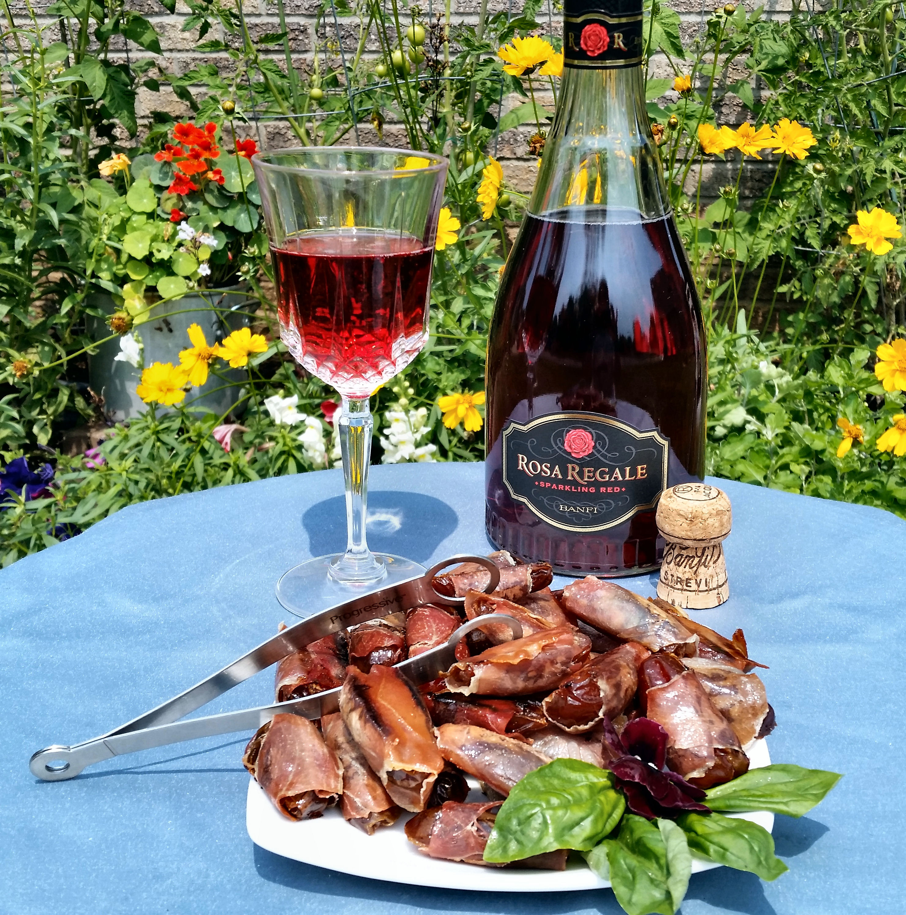 I paired these dates with sparkling wines and they were fantastic! They went especially well with this Banfi Rosa Regale, a slightly sweet, sparkling red wine that adds just of a burst of berry to really complement the sweet and salty contrast.
