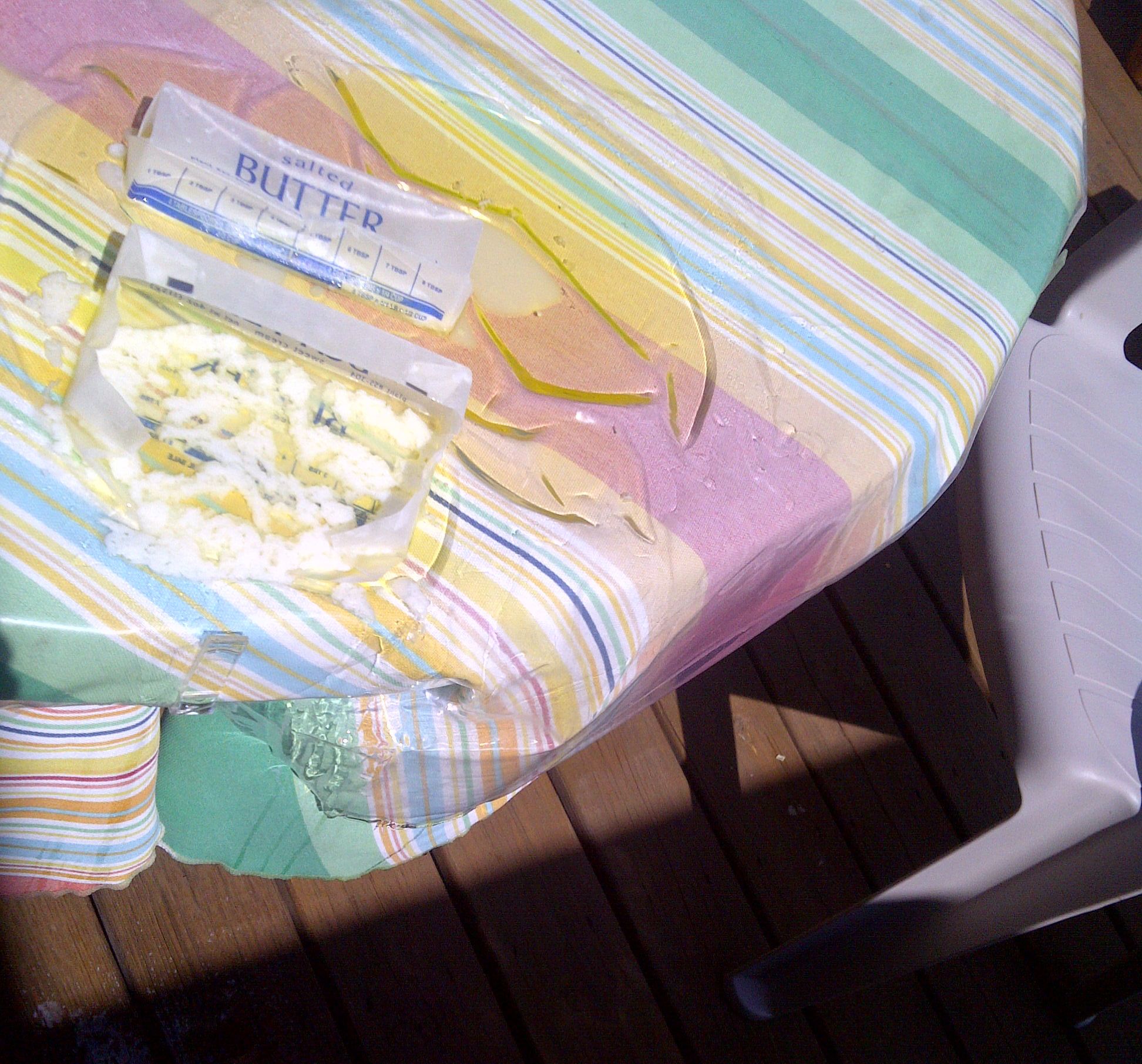 3) Thawing frozen sticks of butter (in this case, for my banana bread) on your patio table in direct sunlight may seem like a good idea, but not when the temperature outside is in the 90s and you totally forget about them.