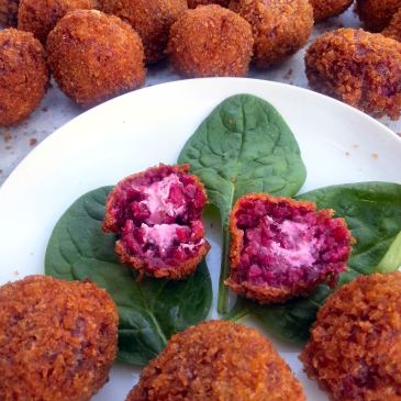 These crisp, savory little snacks are best enjoyed fresh from the fryer, piping hot and oozing with pink-tinged goat cheese. … More Diane’s Beet and Goat Cheese Arancini