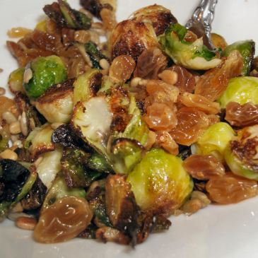 1 Comment Crispy Brussels Sprouts with Sunflower Seeds and Raisins